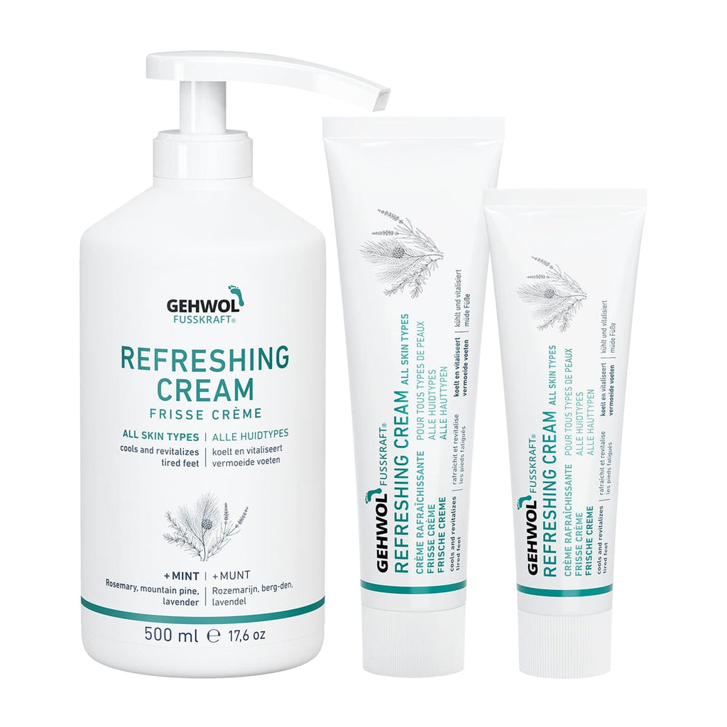 Formerly GEHWOL FUSSKRAFT MINT makes your feet fresh and fit, before or after an active day. It combines the revitalising icy freshness of a cooling mint lotion composed of an Asian medicinal plant oil with the gentle caring effect of a balm that is immediately absorbed. Natural menthol and rosemary, mountain pine and lavender oils refresh and fortify tired and aching feet. It provides long-lasting protection against foot odour. Well-tried antiseptics prevent inflammation and itching between the toes.